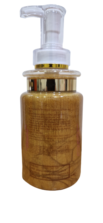 Let yourself be carried away by this exfoliating shower cream to enhance your skin. Its creamy foam sprinkled with fine gold particles